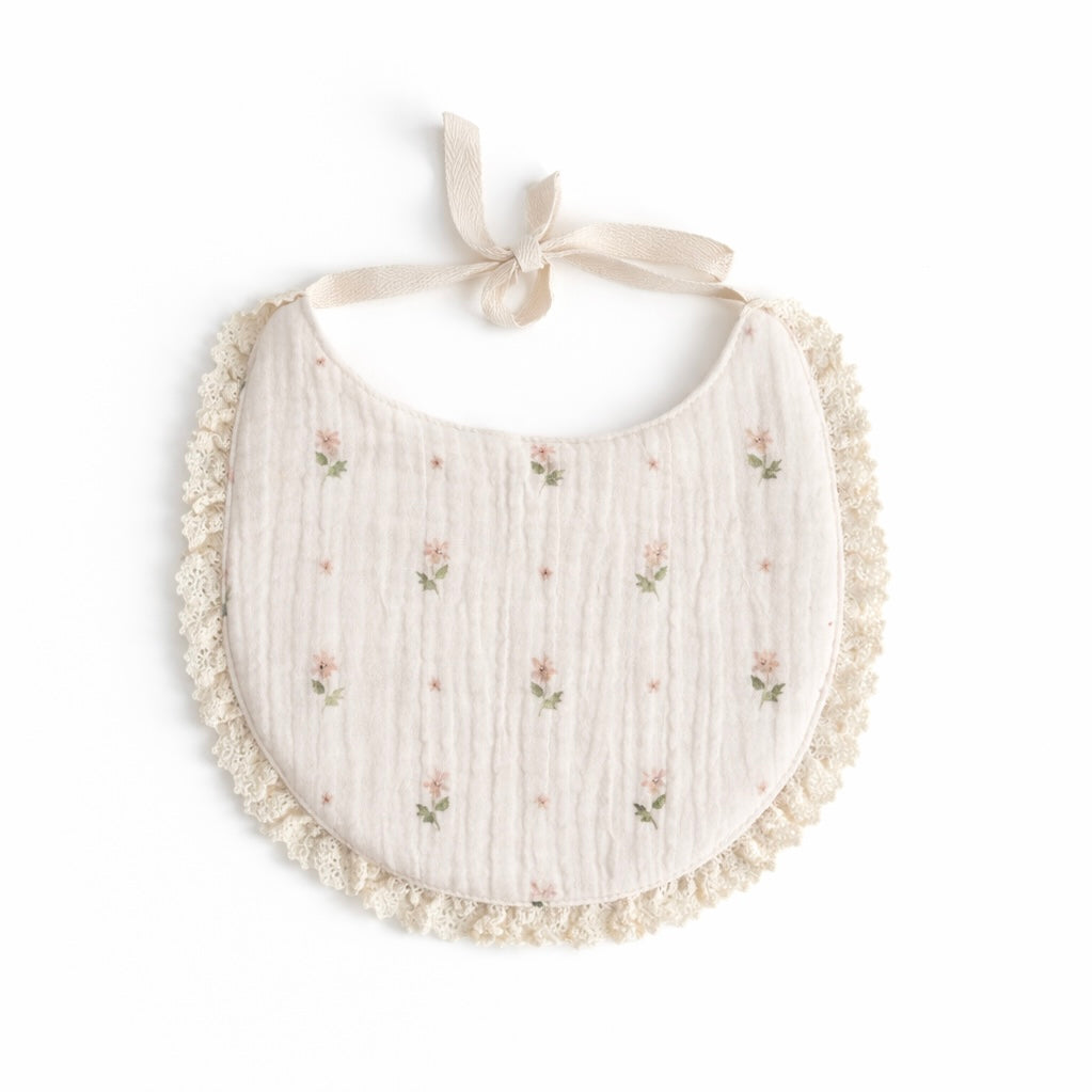 Made from ultra-soft, breathable organic cotton and finished with delicate cream lace trimming, these bibs are as practical as they are timeless. Lightweight yet absorbent, they’re perfect for dribbly days, teething stages, and everyday wear.